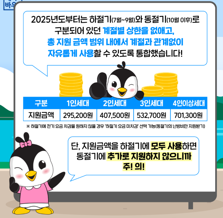 여름·겨울 전체 지원액을 통합 사용합니다.