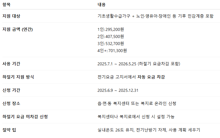 여름철 에너지 바우처 하절기 요금 미차감 신청 팁