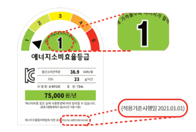 1. 대상 제품 에너지 소비 효율 1등급 라벨이 있는